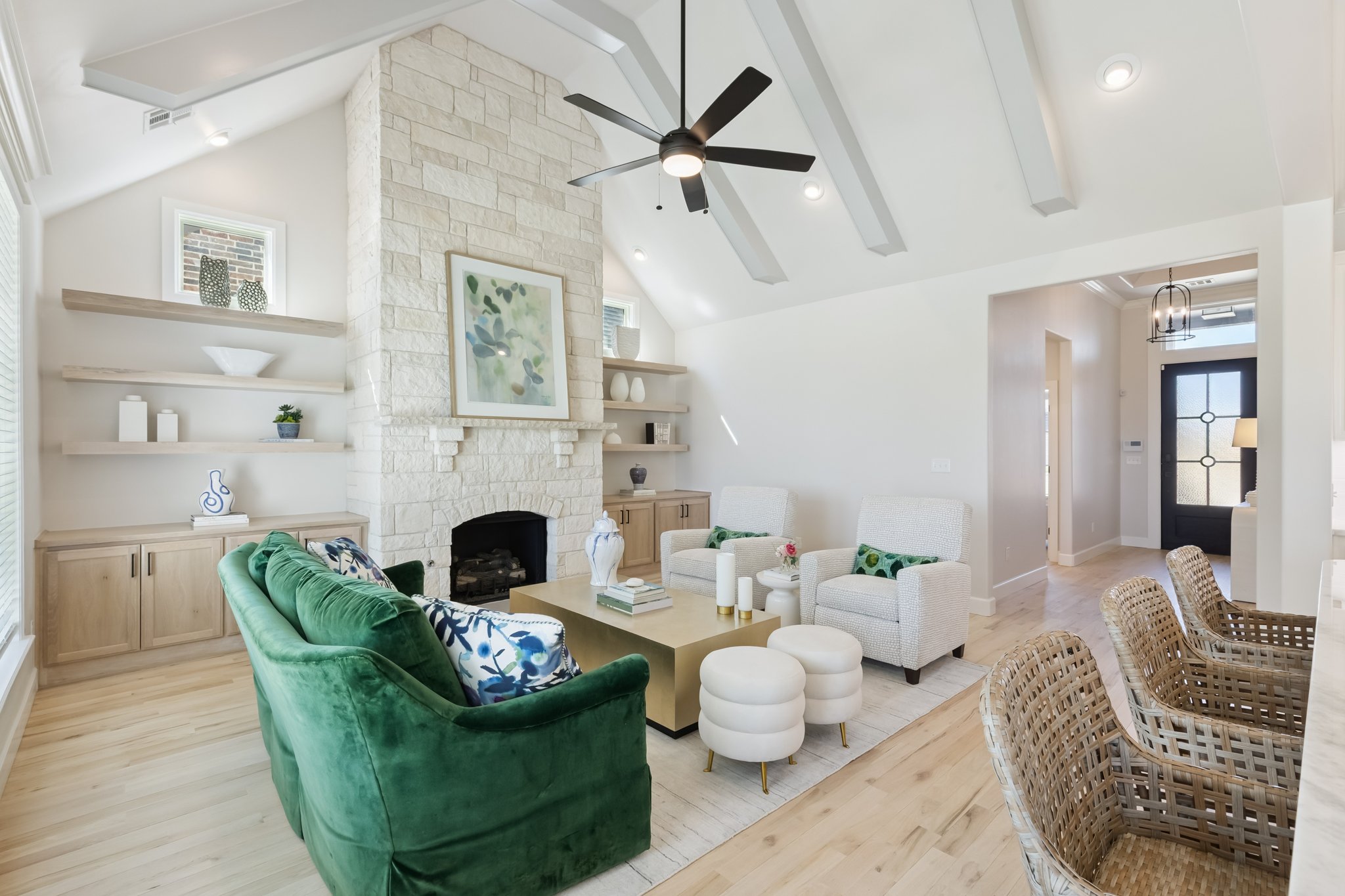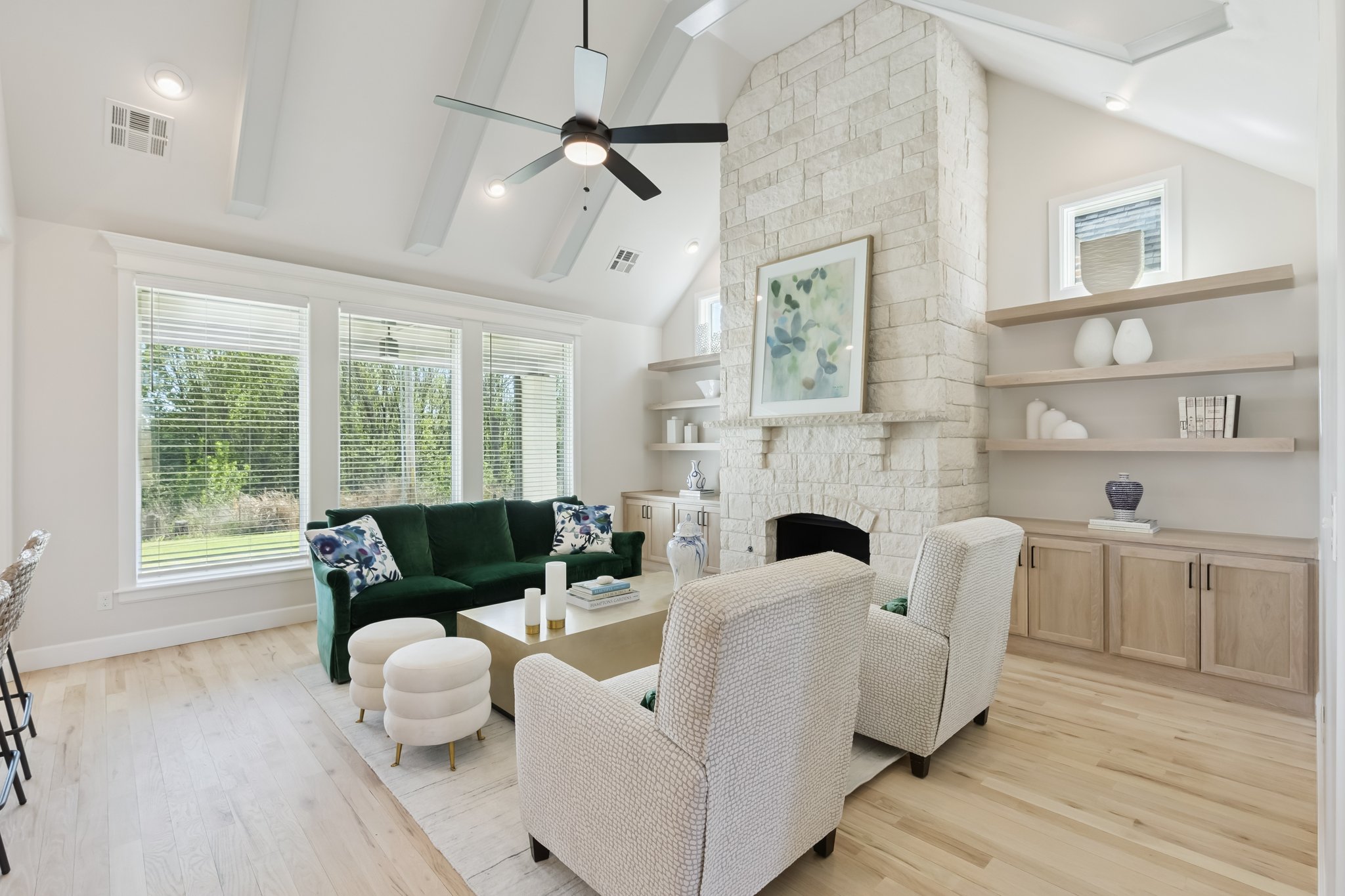 Fireplace Stone to Vaulted Ceiling